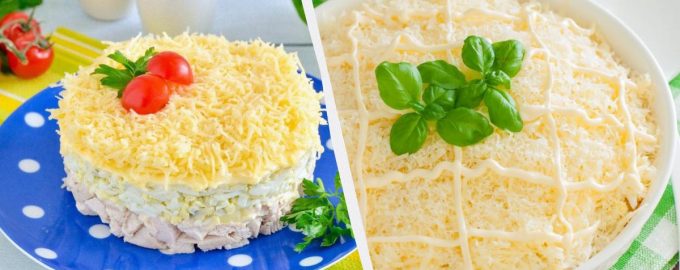 Esta ensalada con la combinación perfecta de capas gustará a todos. Cómo hacer tierna ensalada de capas con setas / My collage, captura de pantalla de YouTube, foto.
